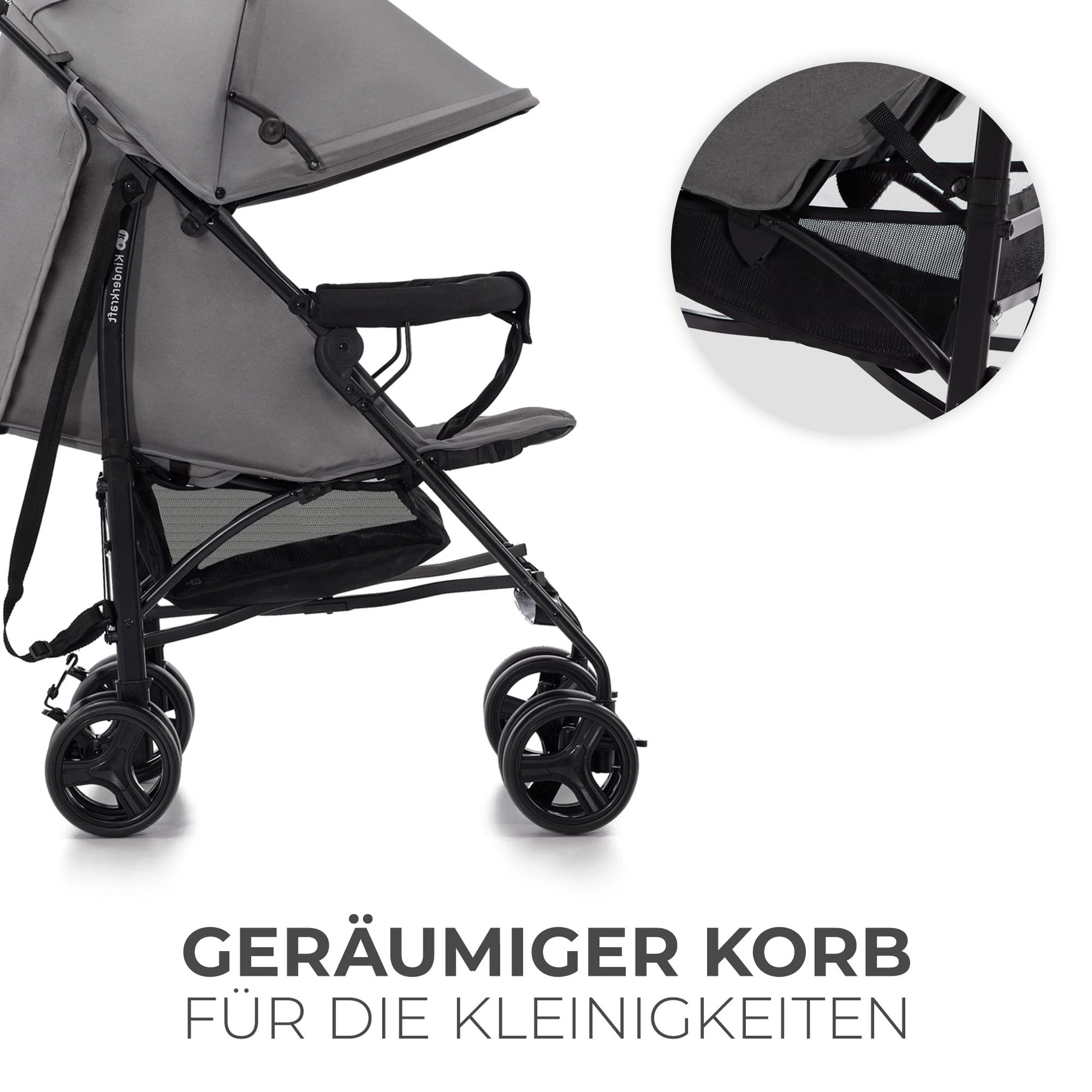 Einzelheiten: Der TIK ist ein leichter Spazierbuggy Regenschirm, der sich in Sekundenschnelle zusammenklappen lässt. Er wiegt nur 6,5 kg und eignet sich daher für Flughäfen, Züge und öffentliche Verkehrsmittel.