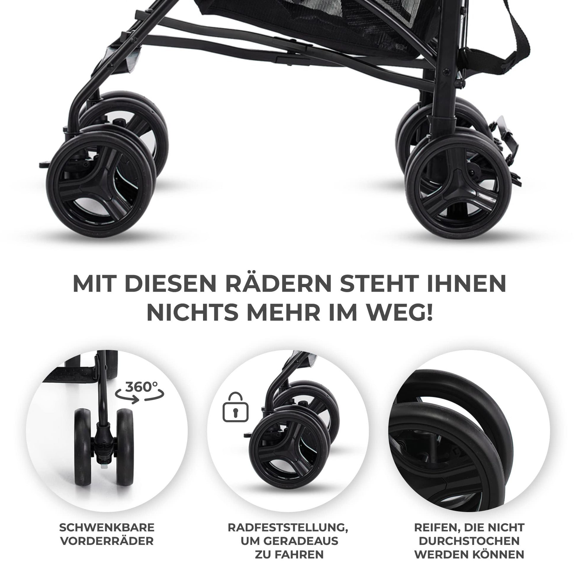 • ✅ PRAKTISCH: Reifen aus Schaumstoff, die nicht durchstochen werden können. Die Vorderräder sind um 360 Grad schwenkbar und haben einen Feststellmechanismus für die Geradeausfahrt. Reifen mit Dämpfung und eignen sich gut für unebene Pflastersteine.