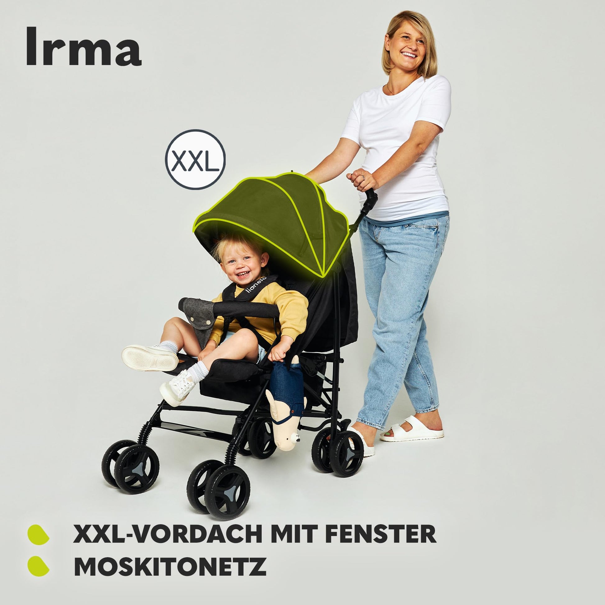 - PRAKTISCHES ZUBEHÖR INKLUSIVE: Moskitonetz. Ablagetasche am Sonnenverdeck. Einkaufskorb. Sehr einfacher Faltmechanismus. Griffe um 360 Grad drehbar