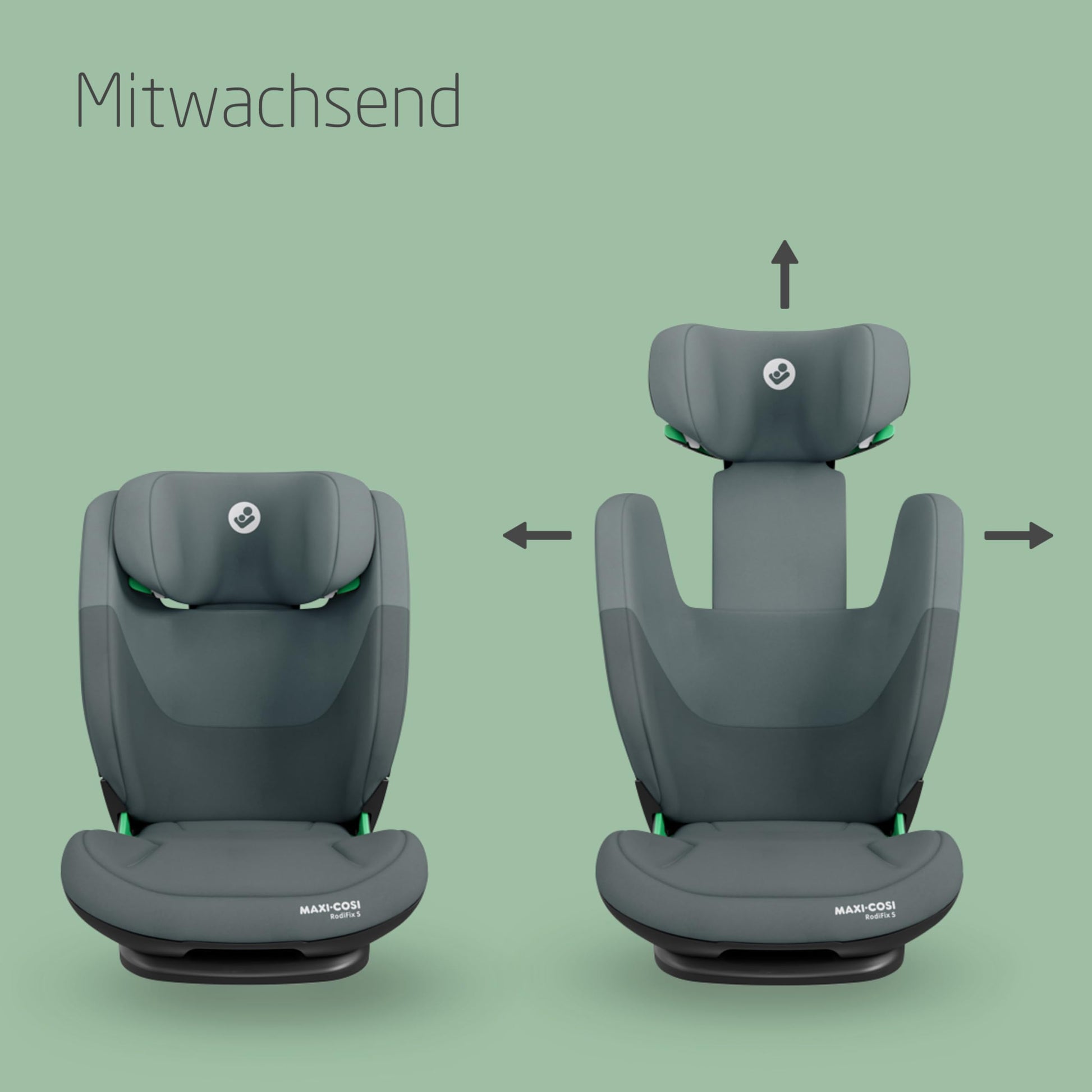 Maxi-Cosi RodiFix S i-Size Kindersitz, 100–150 cm, 3,5–12 Jahre, Autositz Kinder, 3 Liegepositionen, Verstellbare Höhe/Breite, G-CELL Side Impact Protection, AirProtect, Tonal Graphite